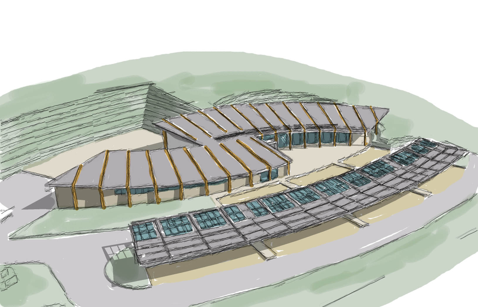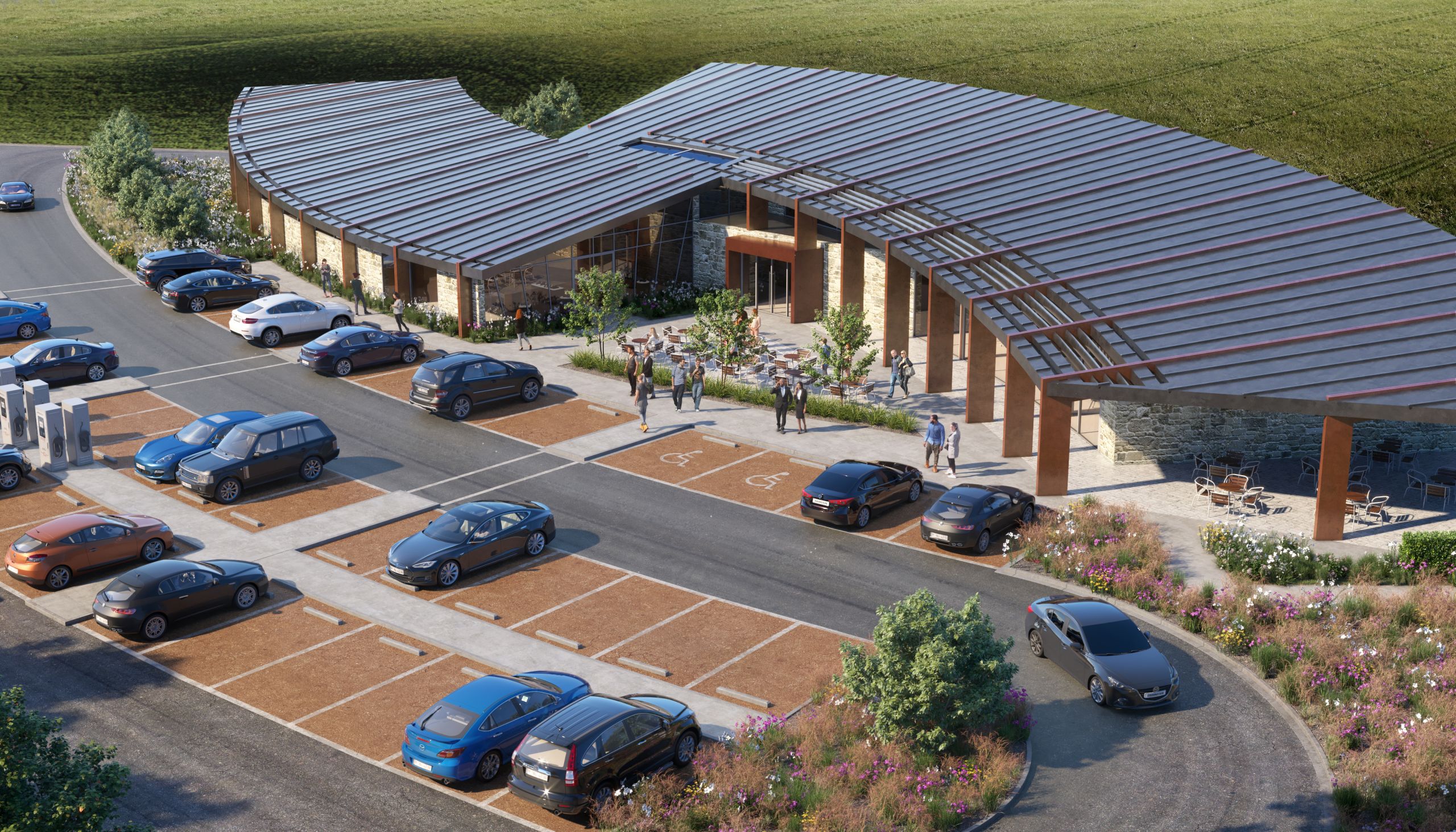 The design and approach was widely praised, ‘The proposals involve the redevelopment of the site with a modern contemporary building that will provide an innovative and exciting appearance to the site. The curved main service building is to have sweeping roofs, and an unusual footprint providing interest to the architectural vernacular and character of the site. The materials are of good quality, using natural stone and timber along with full height glazing, all of which are considered to be sympathetic to and in keeping with the rural character of the area.’ Planning officers report